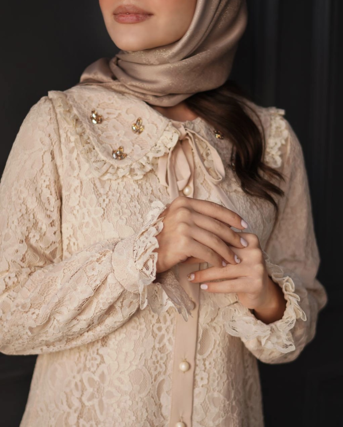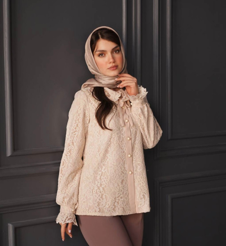 شومیز دانتل با یقه نگینکاری شده – ترکیب لطافت و درخشش