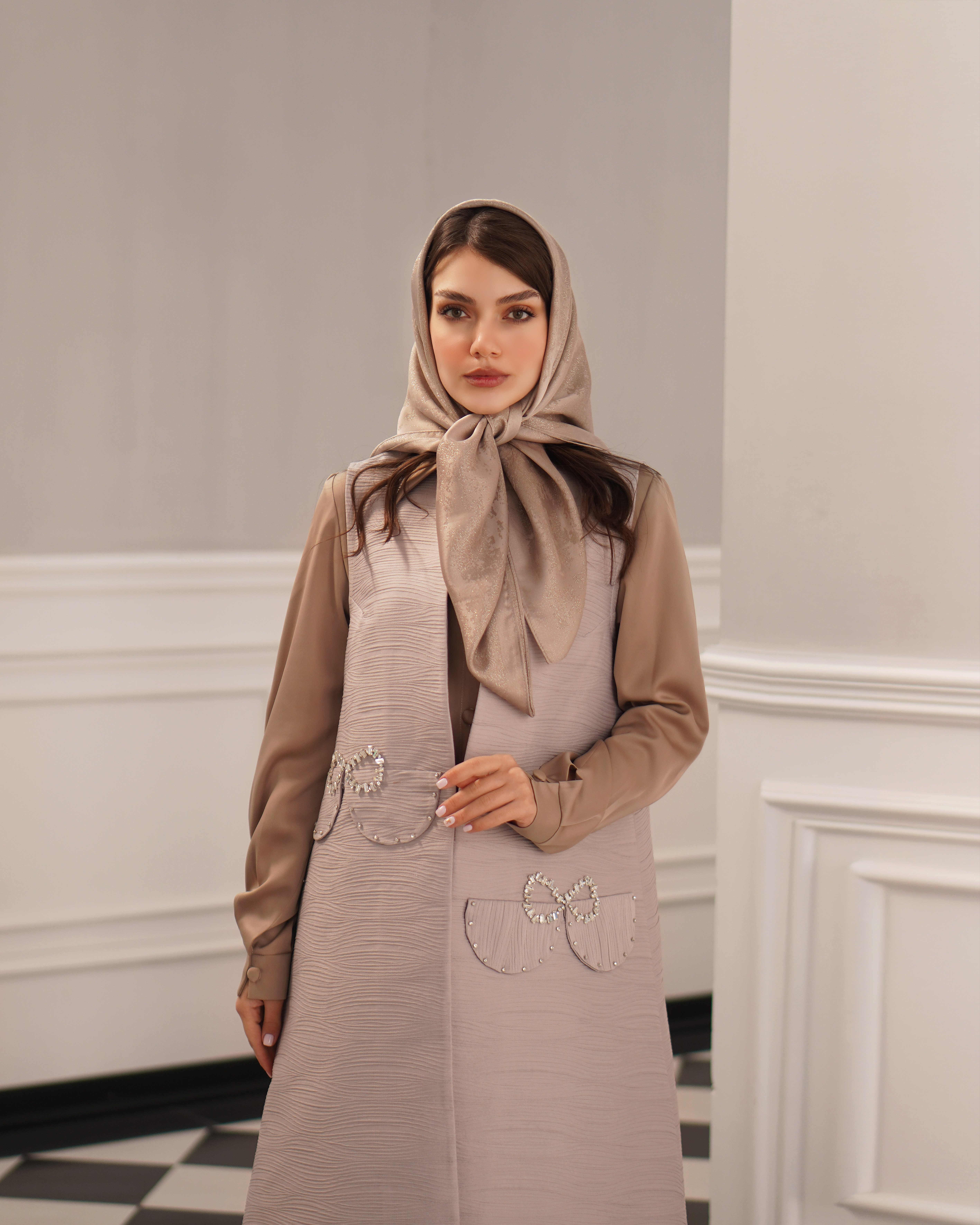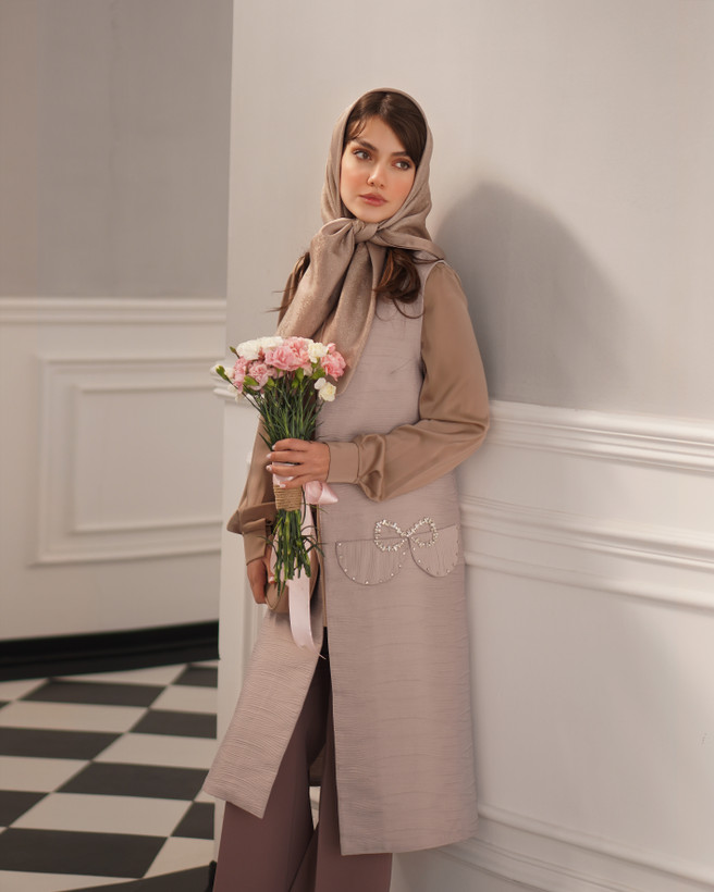 با این وِست خاص و لاکچری، ظرافت طراحی شرقی را با شکوه پارچههای مدرن ترکیب کردهایم. جنس ژاکارد با بافت برجسته و طرحدار، بههمراه جواهردوزیهای ظریف دستی، این لباس را به یک انتخاب بینظیر برای بانوان خوشسلیقه تبدیل کرده است که به دنبال استایلی متمایز و خاص هستند.